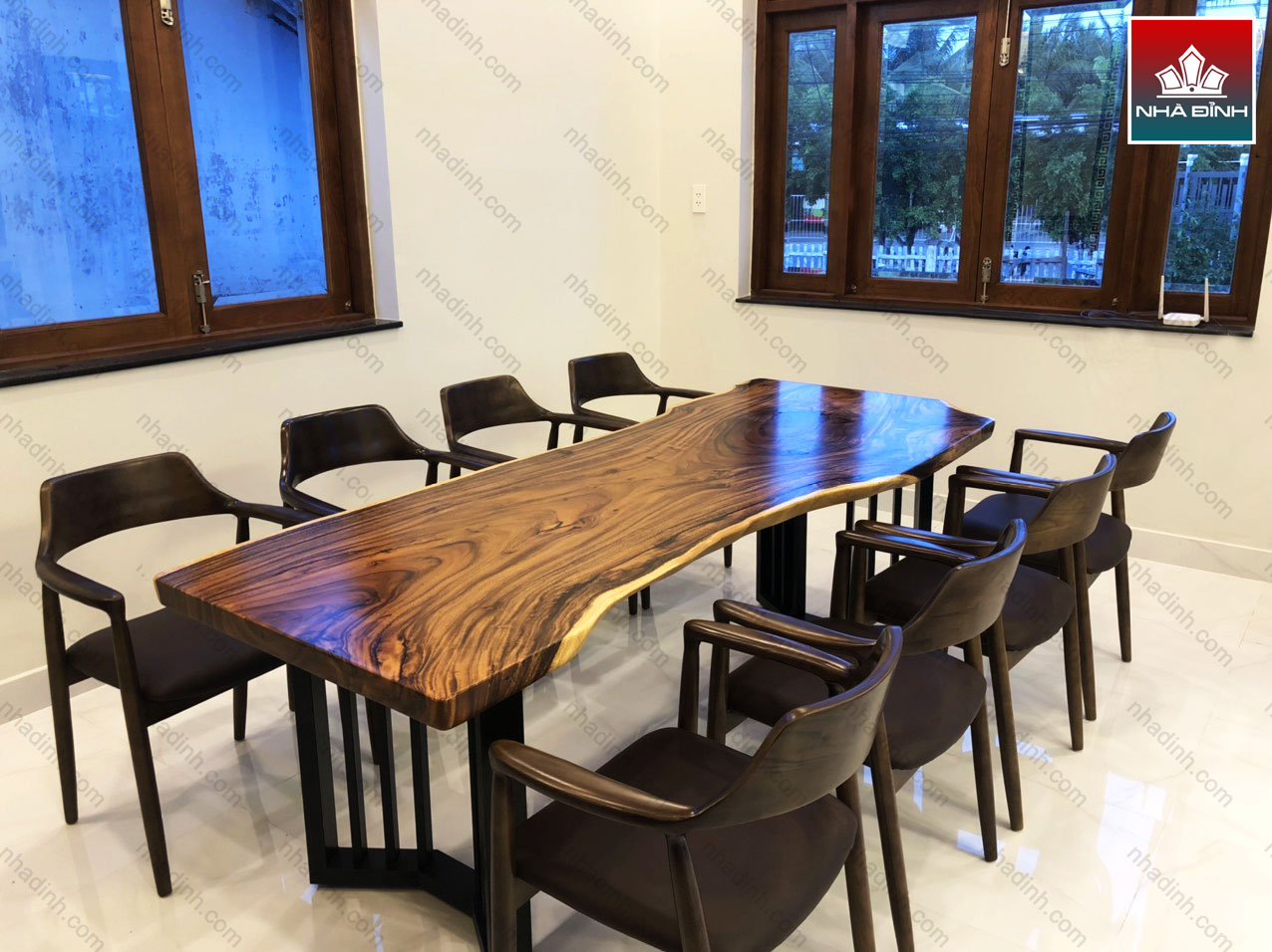 Bộ bàn ăn gỗ Me Tây nguyên khối