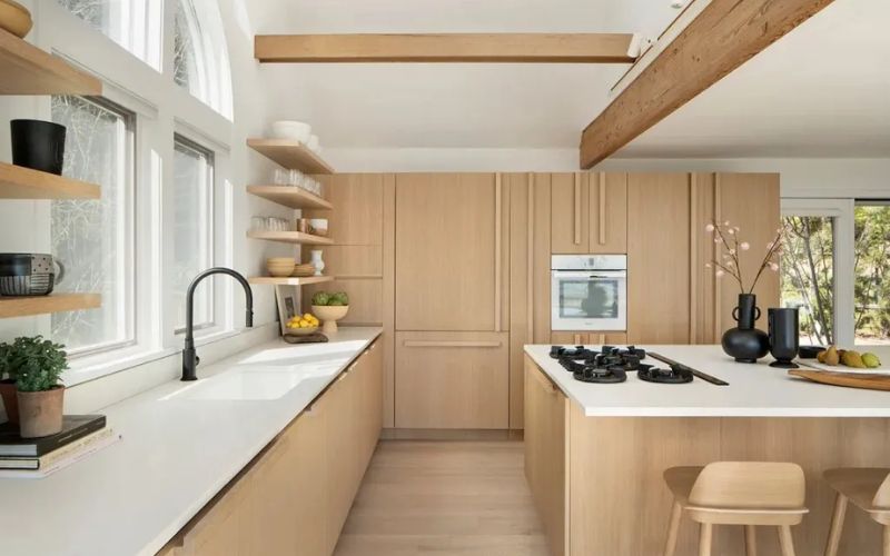 Mẫu tủ bếp gỗ Sồi hiện đại, sang trọng