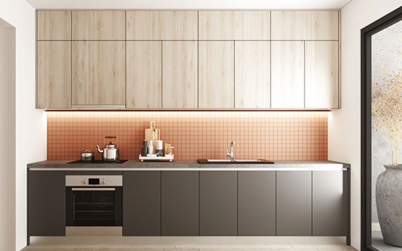 Tất cả những vật dụng, đồ dùng trong không gian căn phòng bếp nói chung nên được sắp xếp gọn gàng, tránh để bày bừa. Mà một trong những cách giúp bạn nhanh chóng làm được điều đó chính là lắp đặt một chiếc tủ bếp để không gian được gọn gàng và ngăn nắp hơn. Thay vì để cồng kềnh, bừa bộn bên ngoài, tất cả nồi niêu, bát đũa, xoong chảo, các vật dụng nấu nướng… đều được xếp gọng trong tủ với từng vị trí, khu vực rõ ràng. Điều này không chỉ giúp bạn tiết kiệm nhiều thời gian khi nấu ăn hay tìm kiếm đồ mà còn tạo nên một thói quen sống khoa học hơn.