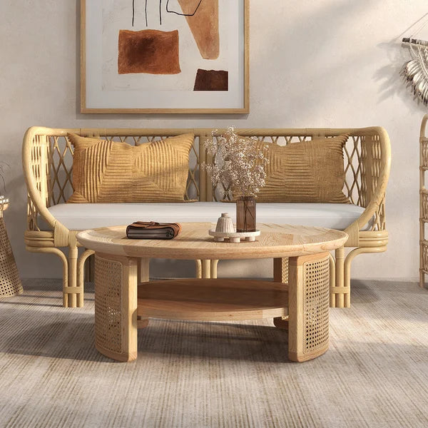 Chất liệu: Mây + Gỗ Tần Bì (Ash)_65% + Gỗ Cao Su Veneer Sồi_35%