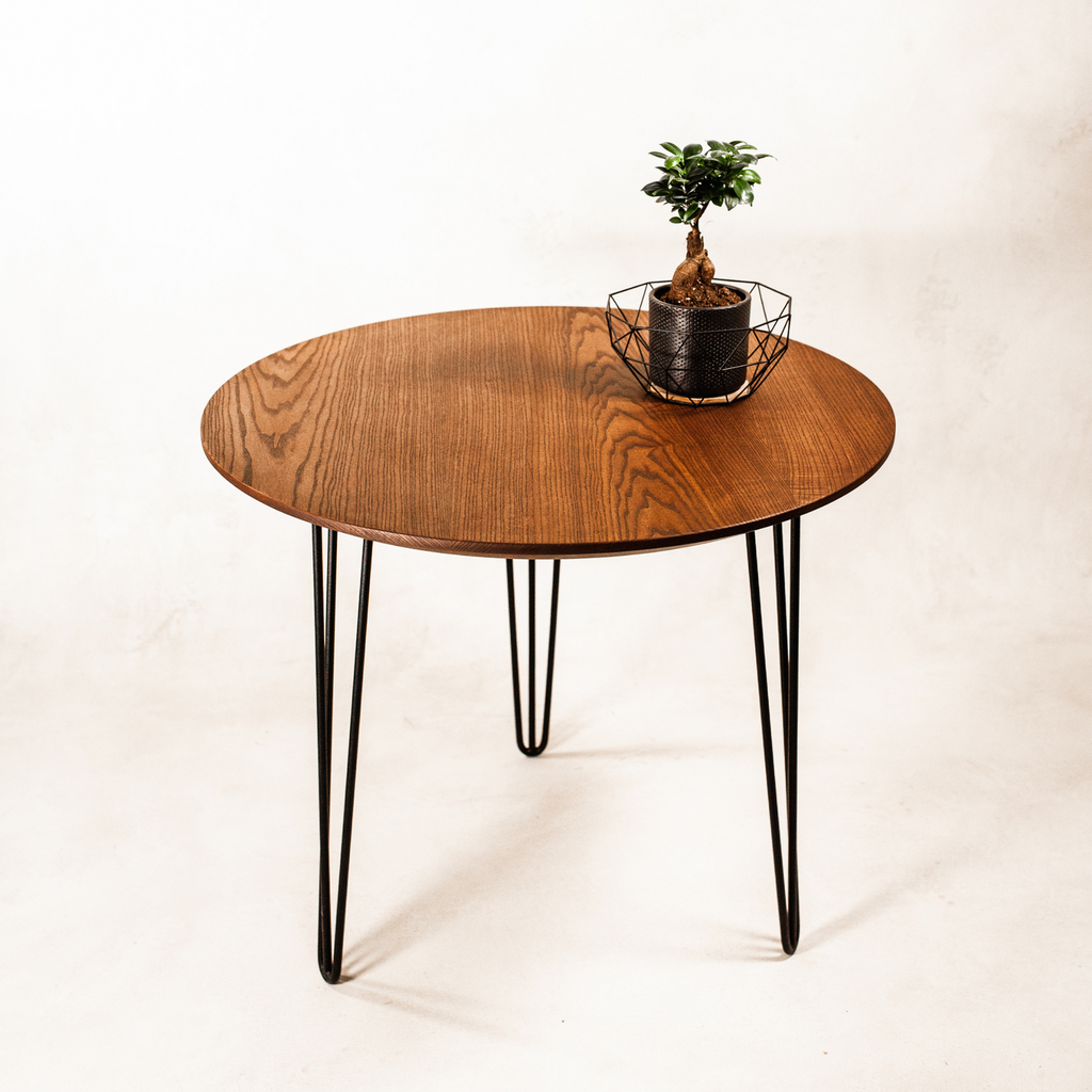Bàn Trà Gỗ Tần Bì Chân Sắt Thanh Đường Kính 60 Dày 4 Cao 45 (cm)