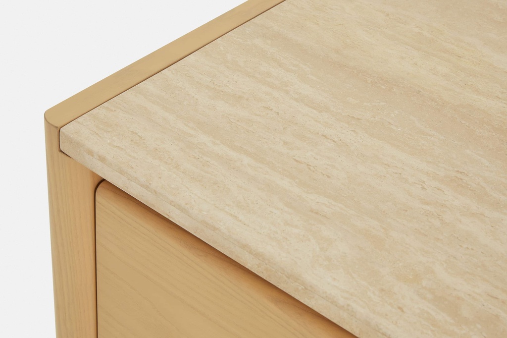 Chất liệu: Gỗ Tần Bì (Ash)_57% + Gỗ Cao Su Veneer Sồi_43% + Mặt Tab Đá Marble
