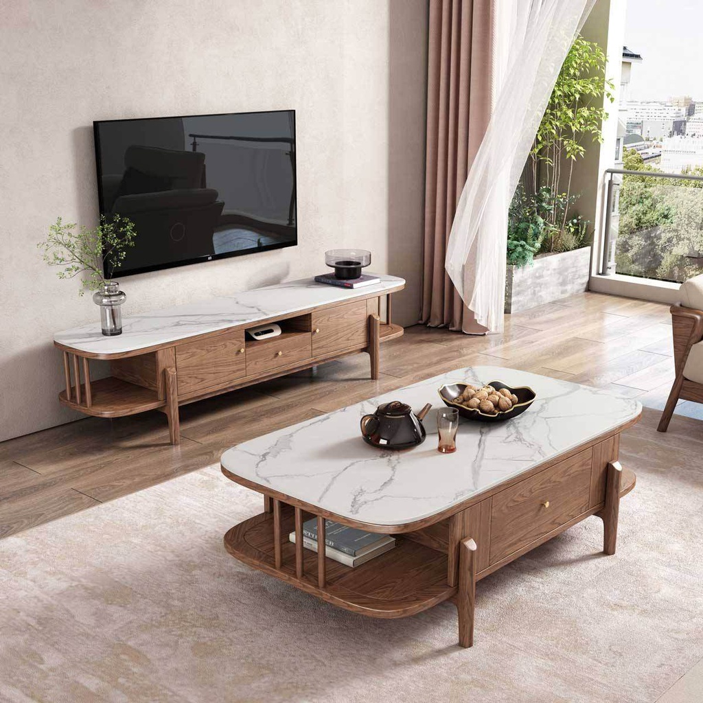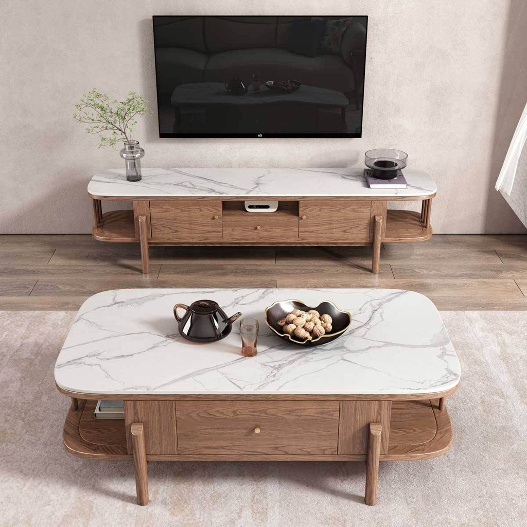Chất liệu: Gỗ Tần Bì (Ash)_35% + Gỗ Cao Su Veneer Sồi_65% + Đá Moka Trắng