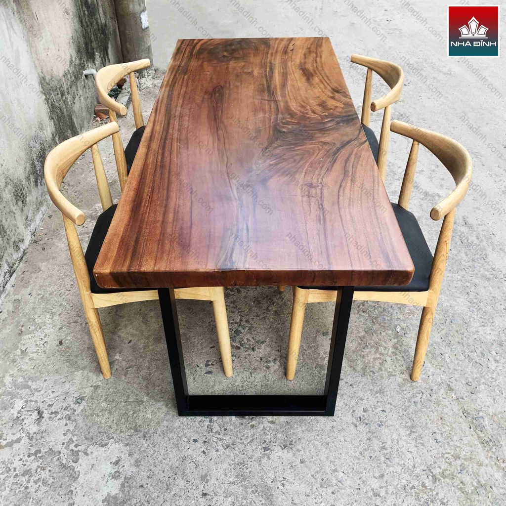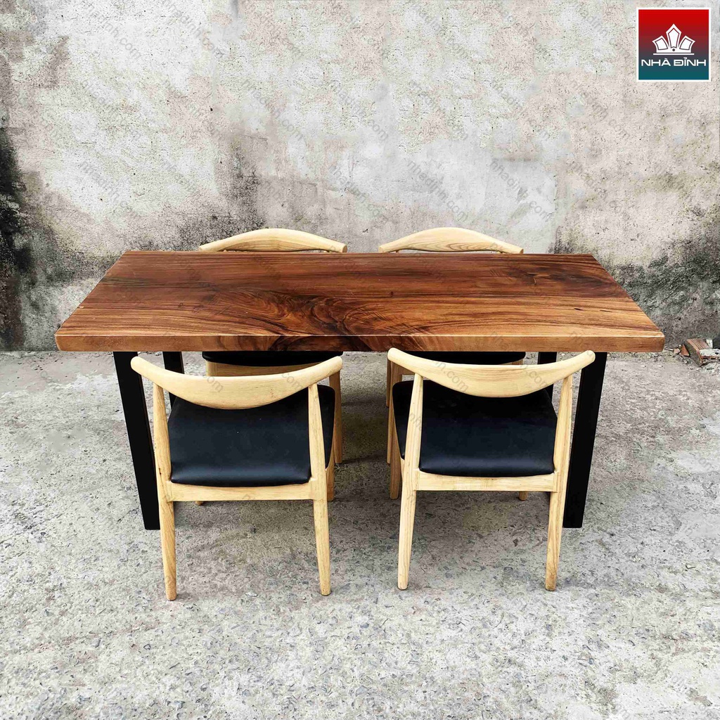 Bàn Ăn 4 Ghế Gỗ Me Tây Dài 165 Rộng 70 Cao 75 (cm)