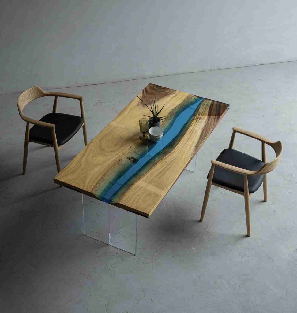 Bàn Ăn Epoxy Gỗ Me Tây Dài 160 Rộng 80 Cao 75 (cm)