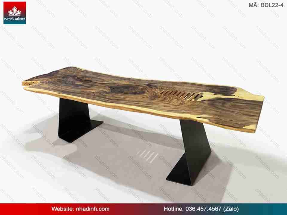 Bàn Ăn Gỗ Me Tây Nguyên Khối Dài 277 Rộng 82-78-93 Mặt Dày 5,6 Cao 75 (cm)