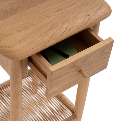 Bàn Đầu Giường Gỗ Sồi Kết Hợp Đan Giây Giấy