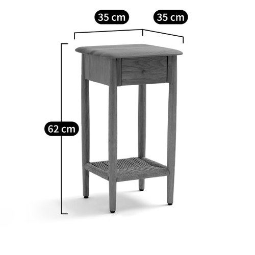 Bàn Đầu Giường Gỗ Sồi Kết Hợp Đan Giây Giấy Cao 62 Rộng 35 Sâu 35 (cm)