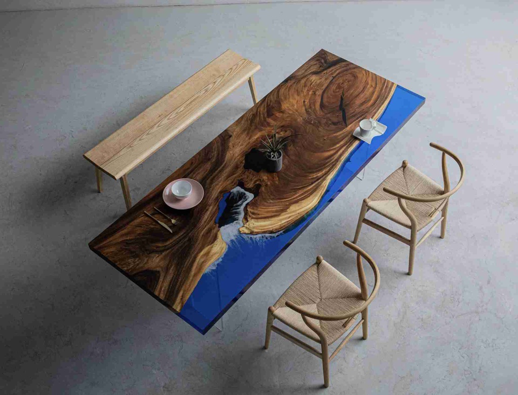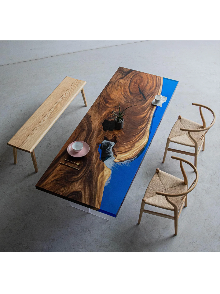 Bàn Epoxy Gỗ Me Tây Dài 220 Rộng 80 Cao 75 (cm)