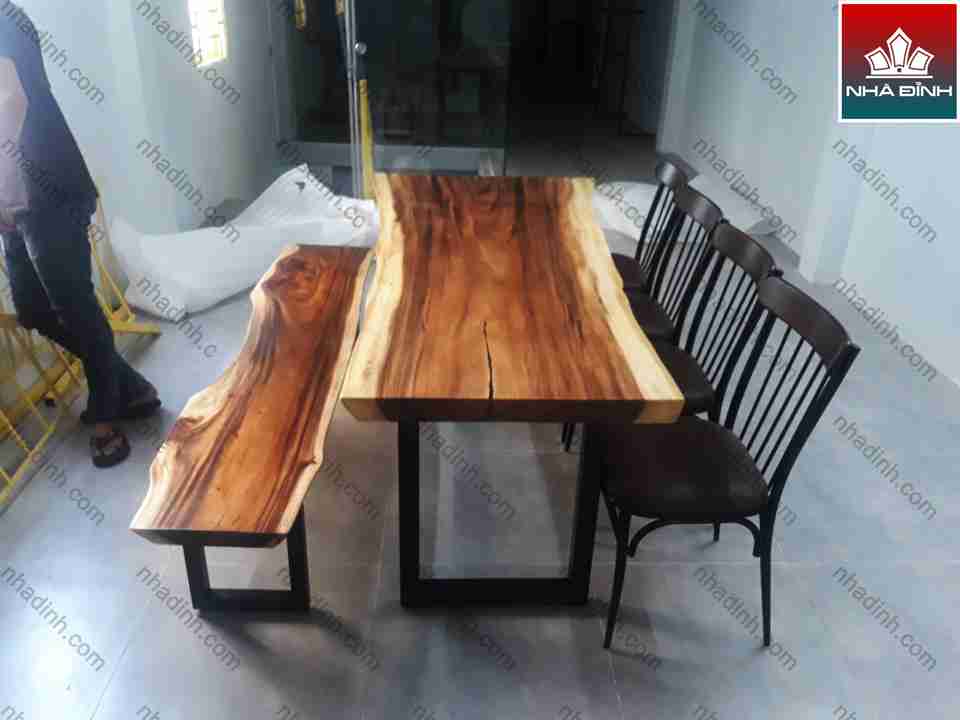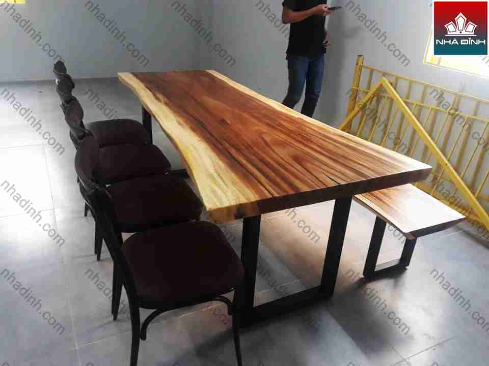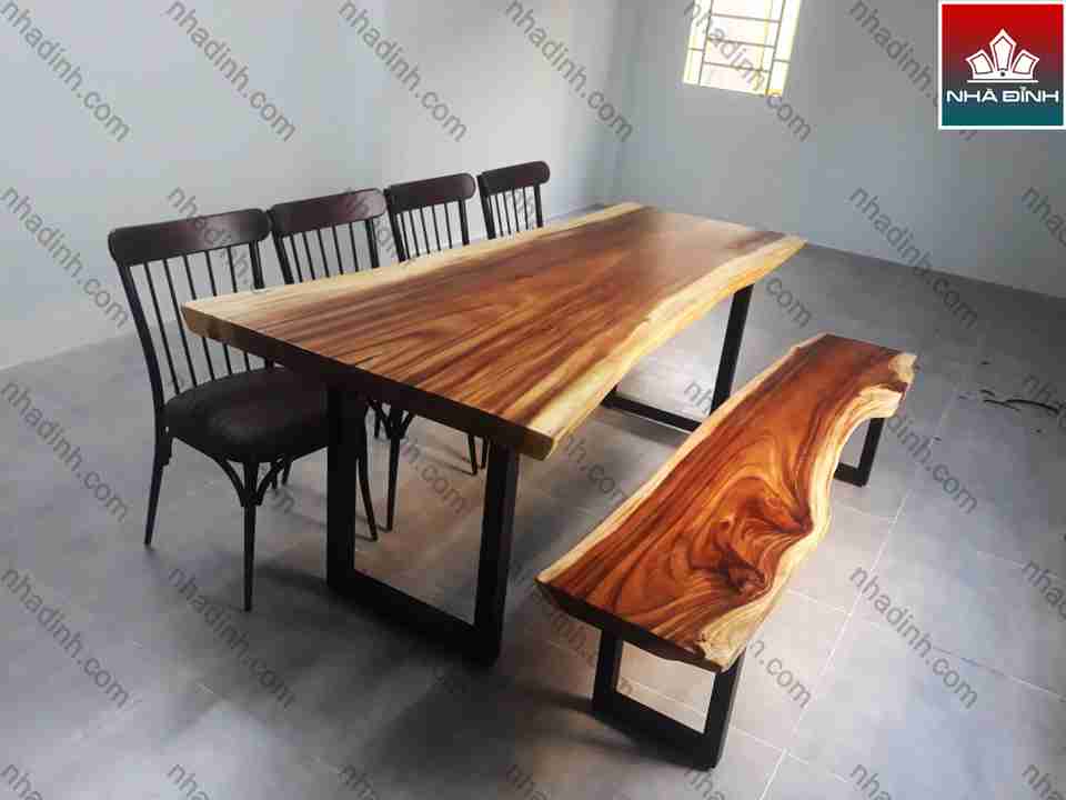 Bàn ghế Ăn Gỗ Me Tây nguyên tấm dài 200 (cm)