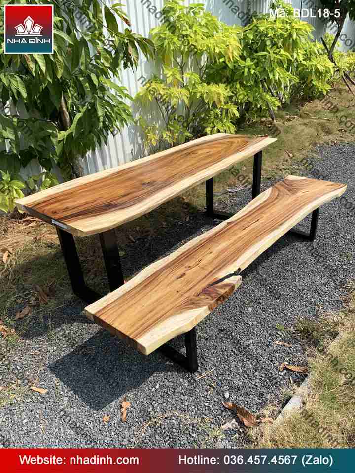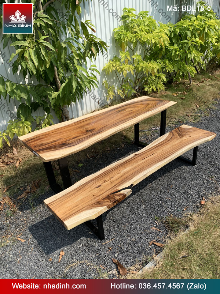 Bàn Ghế Gỗ Me Tây nguyên khối dài 202 rộng 75-68-63 dày 4.7 (cm)