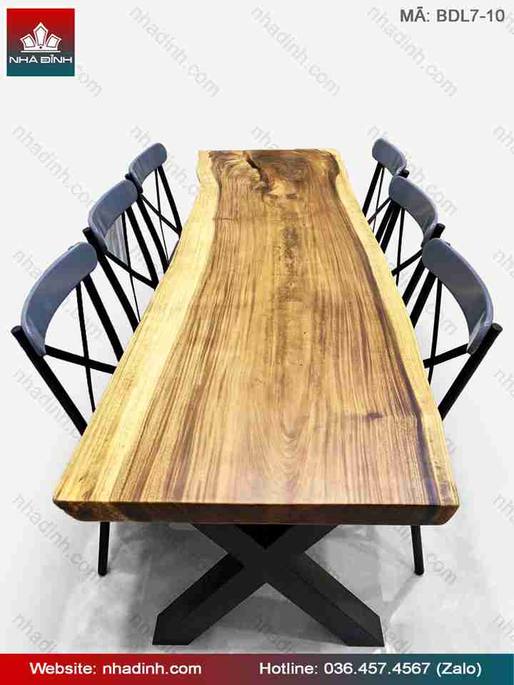 Bàn gỗ Me Tây nguyên khối dài 2070 rộng 680-640-665 dày 55 (mm)
