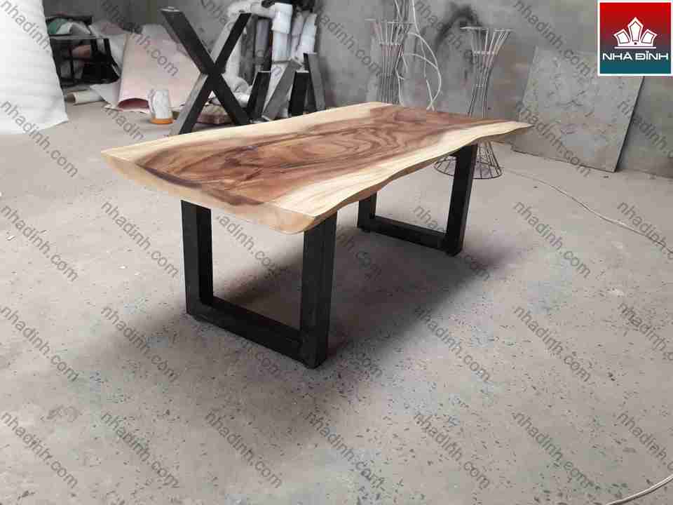 Bàn gỗ Me Tây nguyên khối dài 120 rộng 57-63-67 dày 5 (cm)