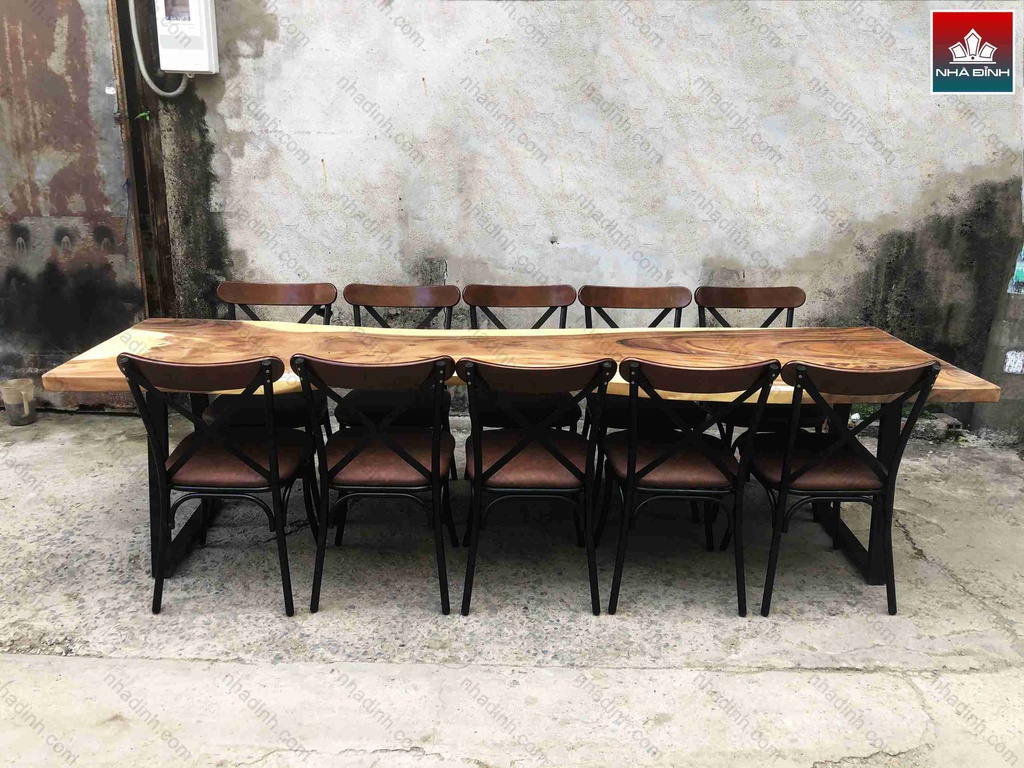 Bàn Gỗ Me Tây Nguyên Khối Dài 289 Rộng 85-67-82 Dày 5,2 Cao 75 (cm)