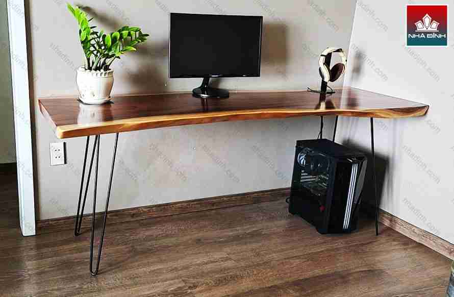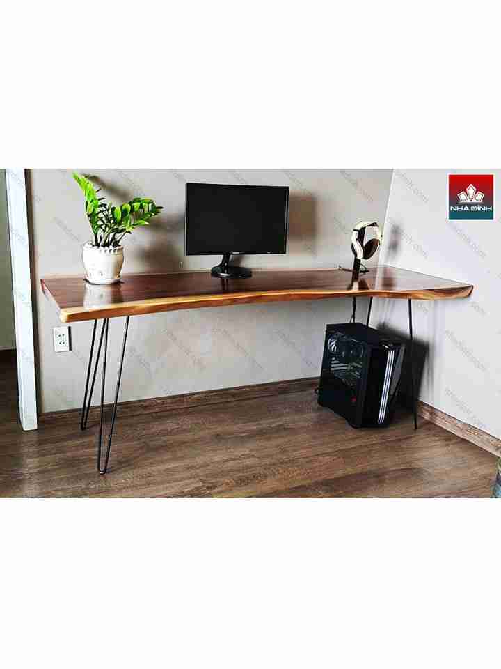 Bàn Làm Việc Gỗ Me Tây Nguyên Khối Dài 197 Rộng 64-56-63 Cao 75 (cm)
