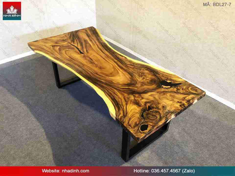 Bàn Làm Việc Gỗ Me Tây Nguyên Tấm Dài 210 Rộng 105-72-91 Dày 5 (cm)