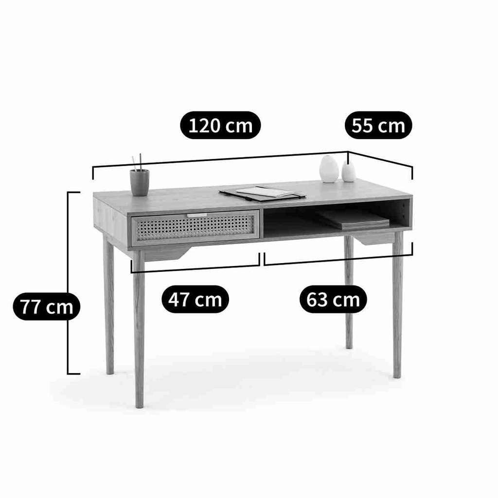Bàn Làm Việc Gỗ Sồi Kết Hợp Mây Dài 120 Rộng 55 Cao 77 (cm)