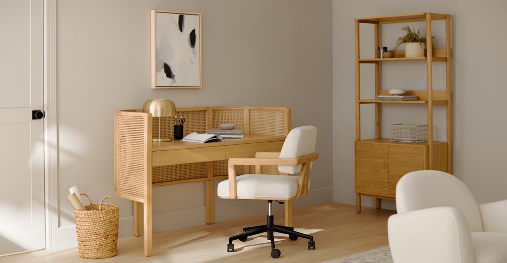 Bàn Làm Việc Gỗ Sồi Kết Hợp Mây Mắt Cáo