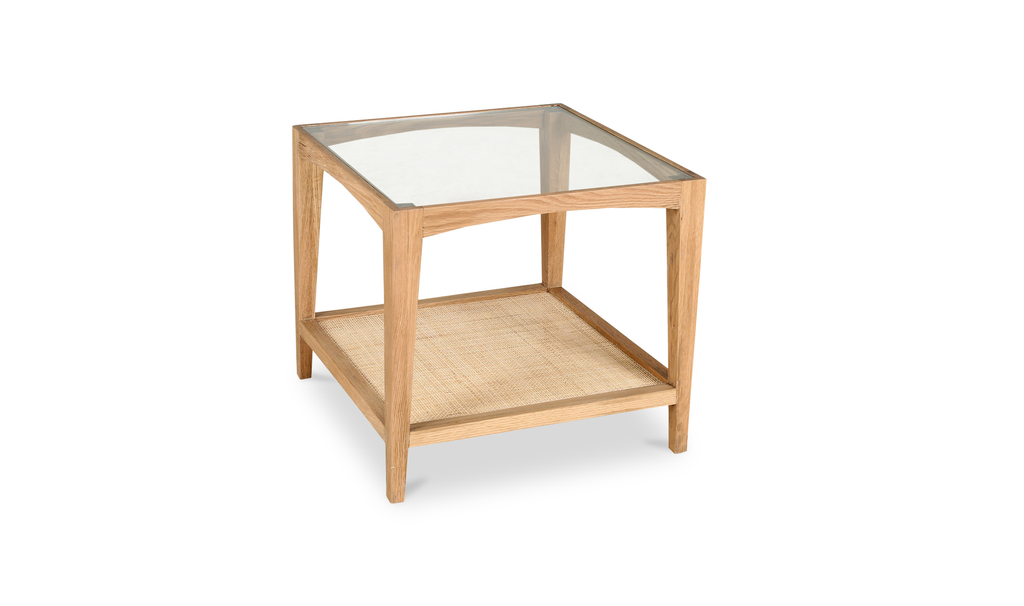 Bàn Phụ Vuông Mặt Kính Gỗ Sồi Kết Hợp Mây