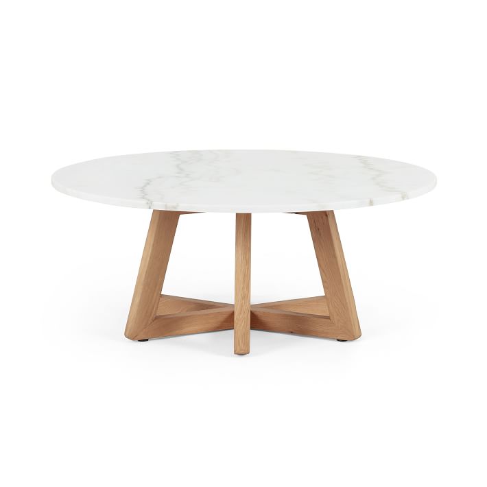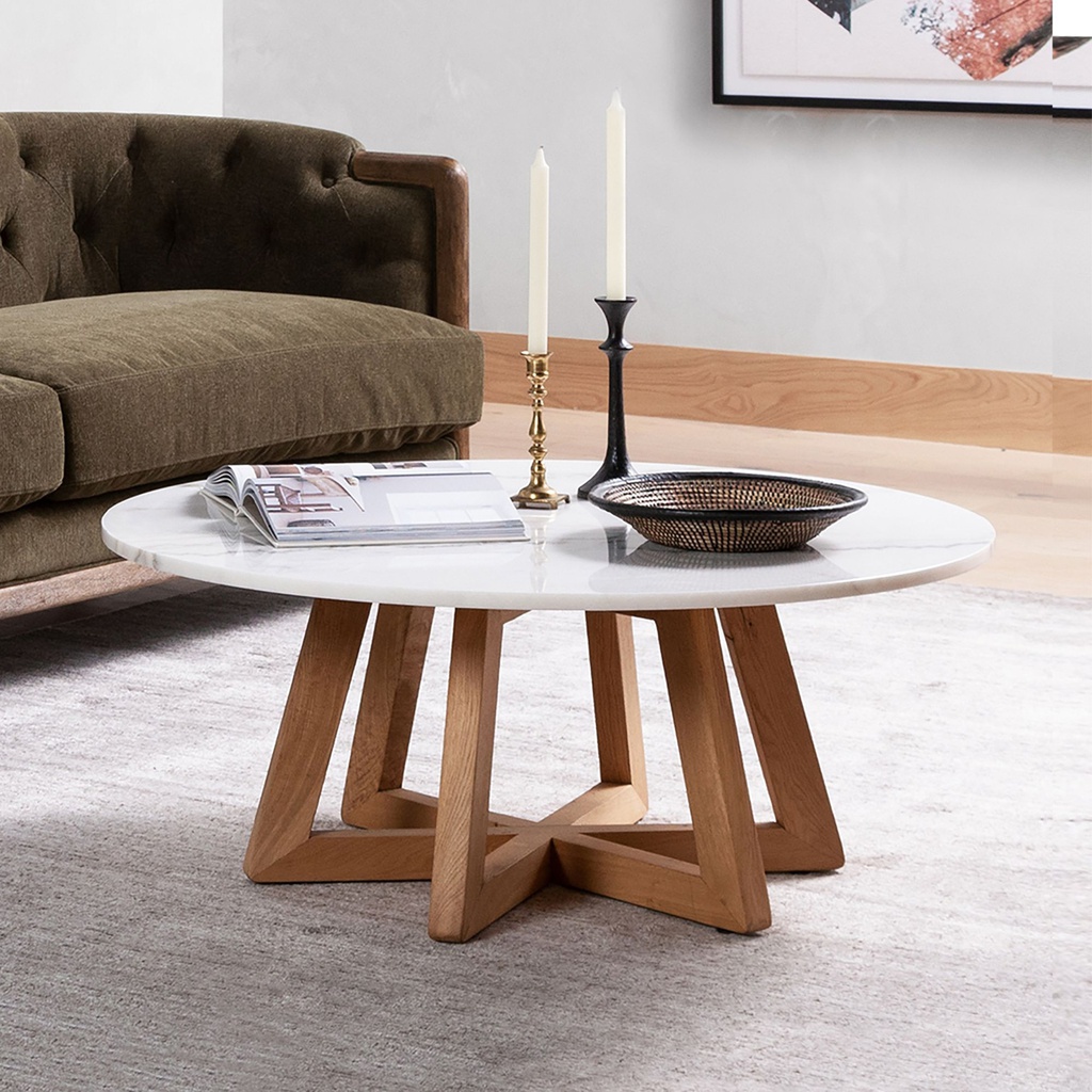 Bàn Trà Gỗ Sồi Kết Hợp Mặt Đá Trắng Đường Kính 101 Cao 40 (cm)