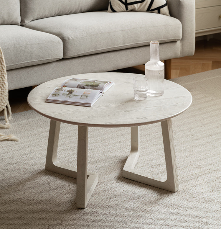 Bàn Trà Tròn Gỗ Sồi Sơn Trắng Đường Kính 75 Cao 40 (сm)