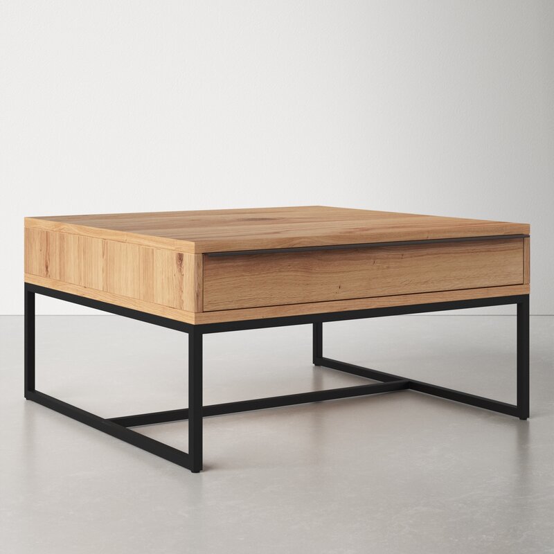 Bàn Trà Vuông Chân Sắt Gỗ Sồi Cao 41 Vuông 80 (cm)
