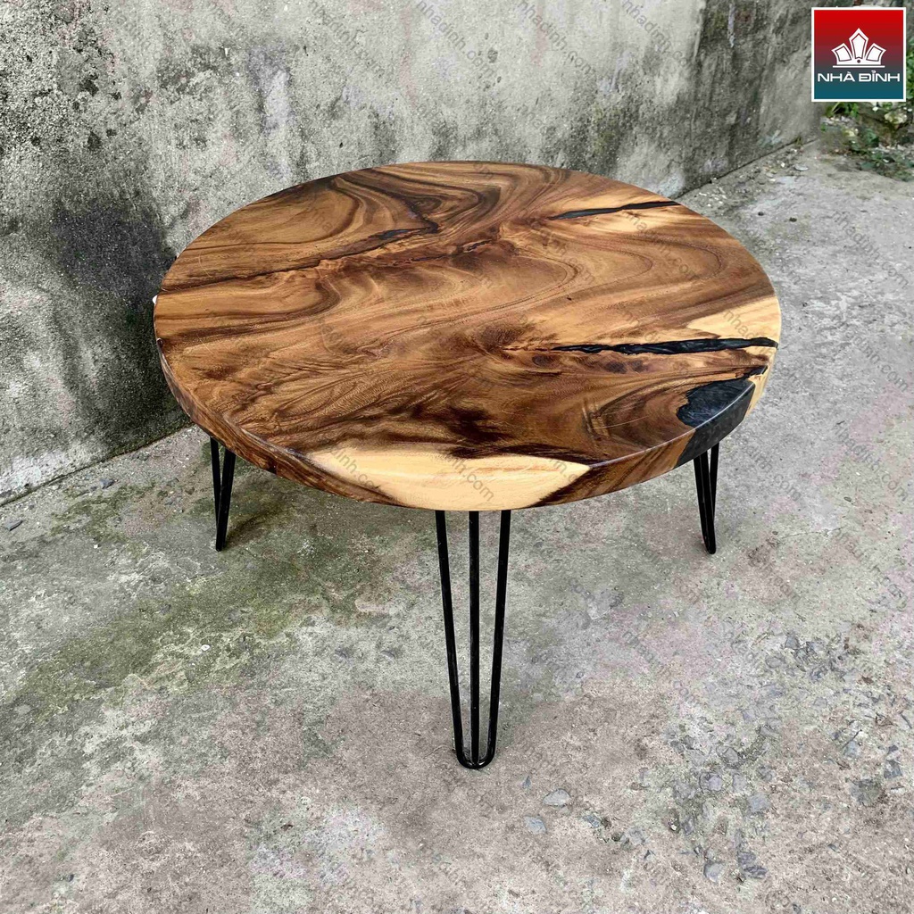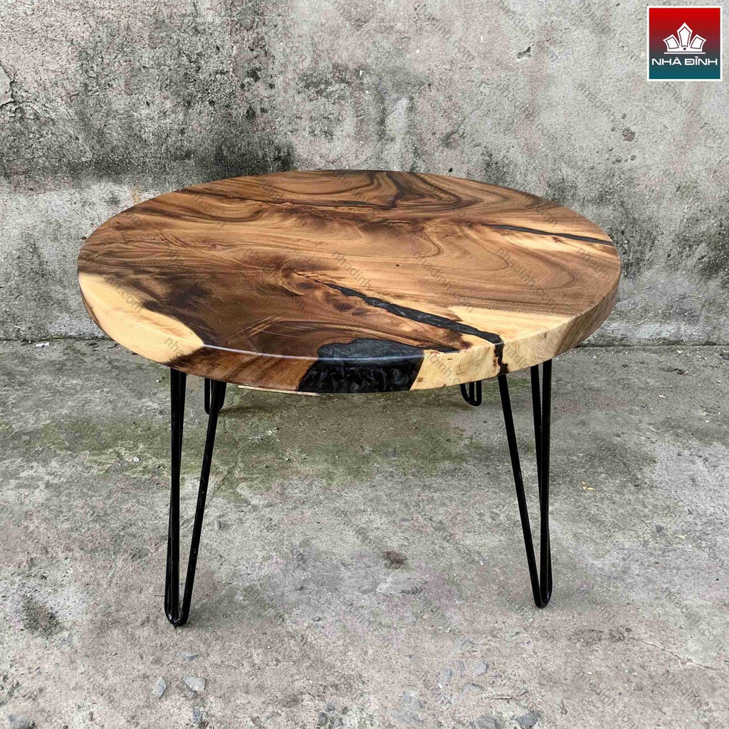 Bàn Tròn Epoxy Gỗ Me Tây Đường Kính 70 Dày 4 Cao 45 (cm)