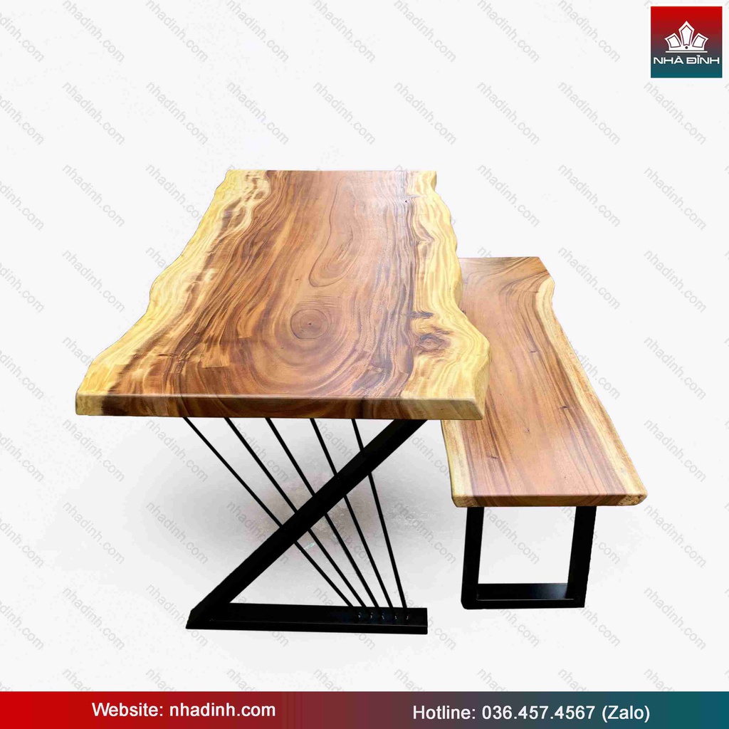 Bộ Bàn 1 Băng Gỗ Me Tây Nguyên Khối Dài 180 Rộng 82-78-79 Dày 4,8 (cm)