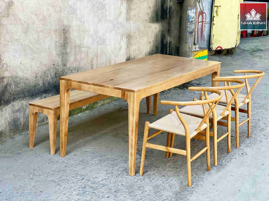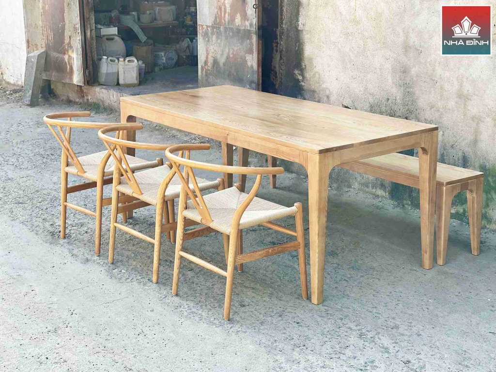Bộ Bàn Ăn Gỗ Tần Bì (Ash) Dài 180 Rộng 80 Cao 75 (cm)
