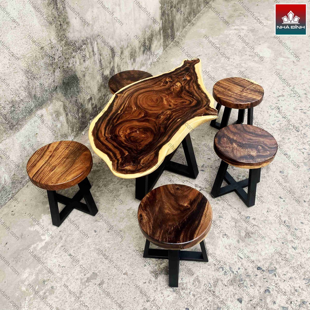 Bộ Bàn Ghế Uống Trà Gỗ Me Tây Nguyên Khối 1 Bàn 5 Ghế Đẩu
