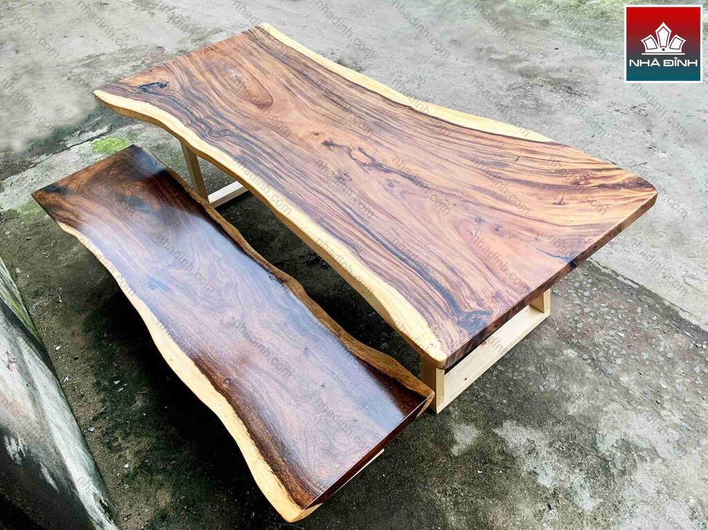 Bộ Bàn Và Băng Ghế Gỗ Me Tây Dài 240 Rộng 80 (cm)