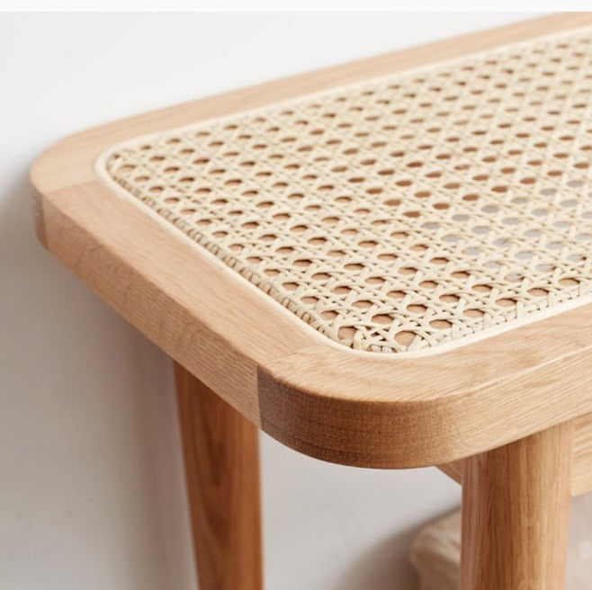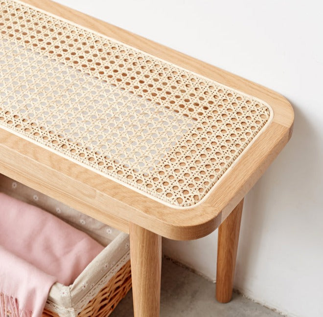 Ghế Băng Gỗ Sồi Mặt Lưới Mây