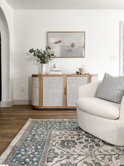 Kệ Trang Trí Gỗ Sồi Kết Hợp Mây Mắt Cáo