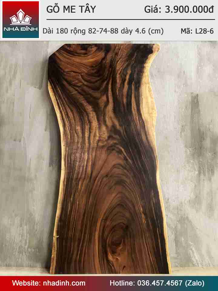 Mặt Bàn Ăn Gỗ Me Tây Nguyên Khối Dài 180 Rộng 82-74-88 Dày 4,6 (cm)