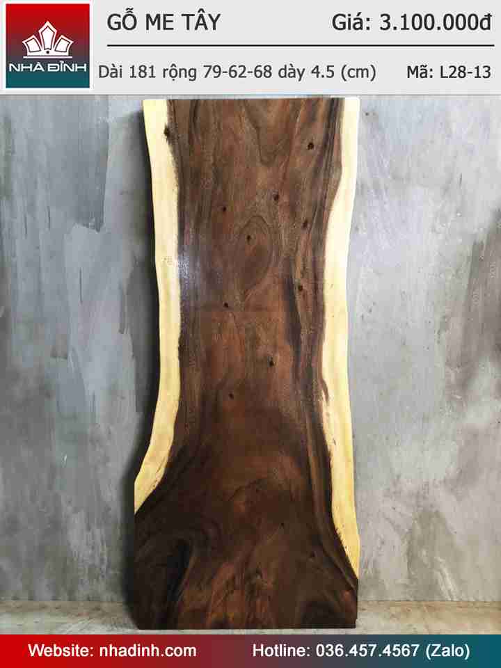 Mặt Bàn Ăn Gỗ Me Tây Nguyên Khối Dài 181 Rộng 79-62-68 Dày 4,5 (cm)