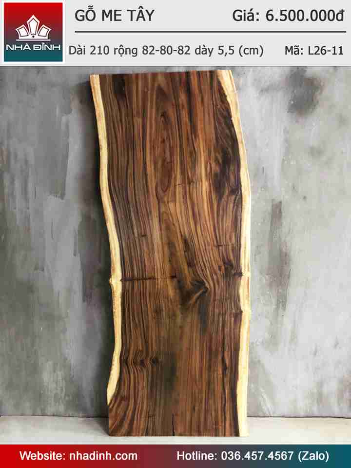 Mặt Bàn Ăn Gỗ Me Tây Nguyên Khối Dài 210 Rộng 82-80-82 Dày 5,5 (cm)