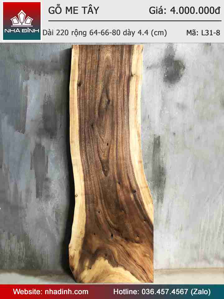 Mặt Bàn Ăn Gỗ Me Tây Nguyên Khối Dài 220 Rộng 64-66-80 Dày 4,4 (cm)