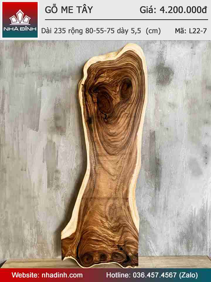 Mặt Bàn Ăn Gỗ Me Tây Nguyên Khối Dài 235 Rộng 80-55-75 Dày 5,5 (cm)