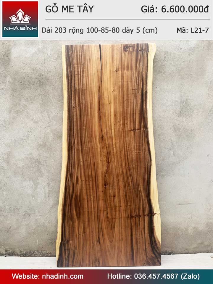 Mặt Bàn Dài Gỗ Me Tây Nguyên Khối Dài 203 Rộng 100-85-80 Dày 5 (cm)
