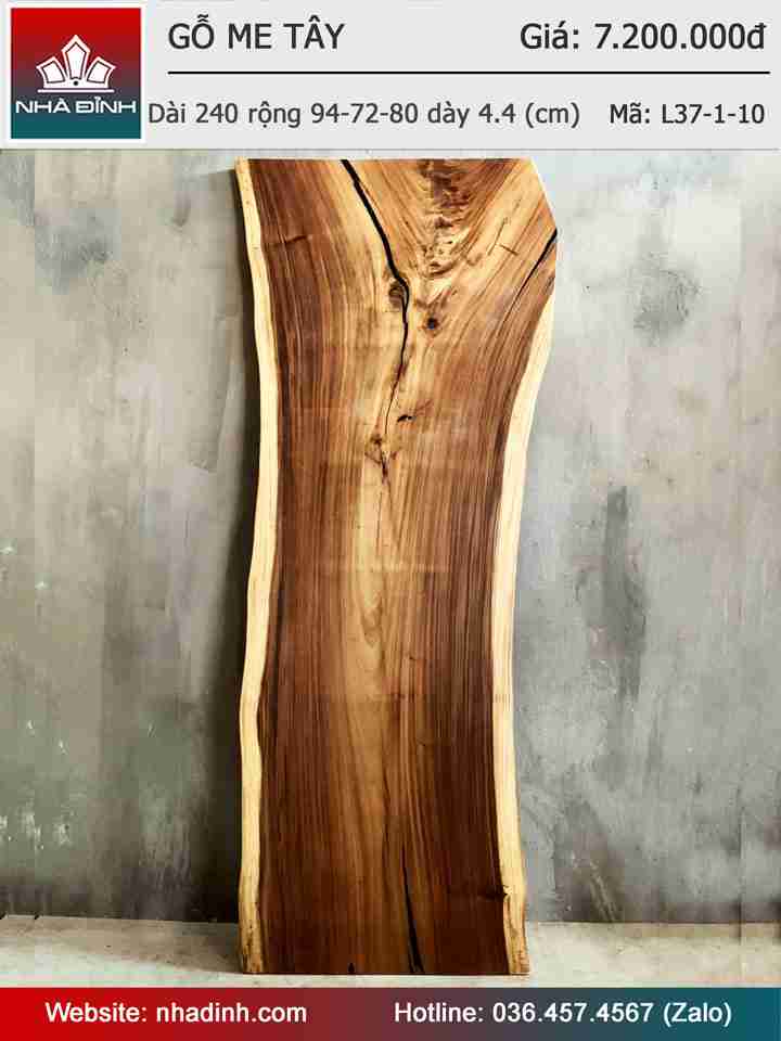 Mặt Bàn Gỗ Me Tây Dài 240 Rộng 94-78-80 Dày 4,4 (cm)
