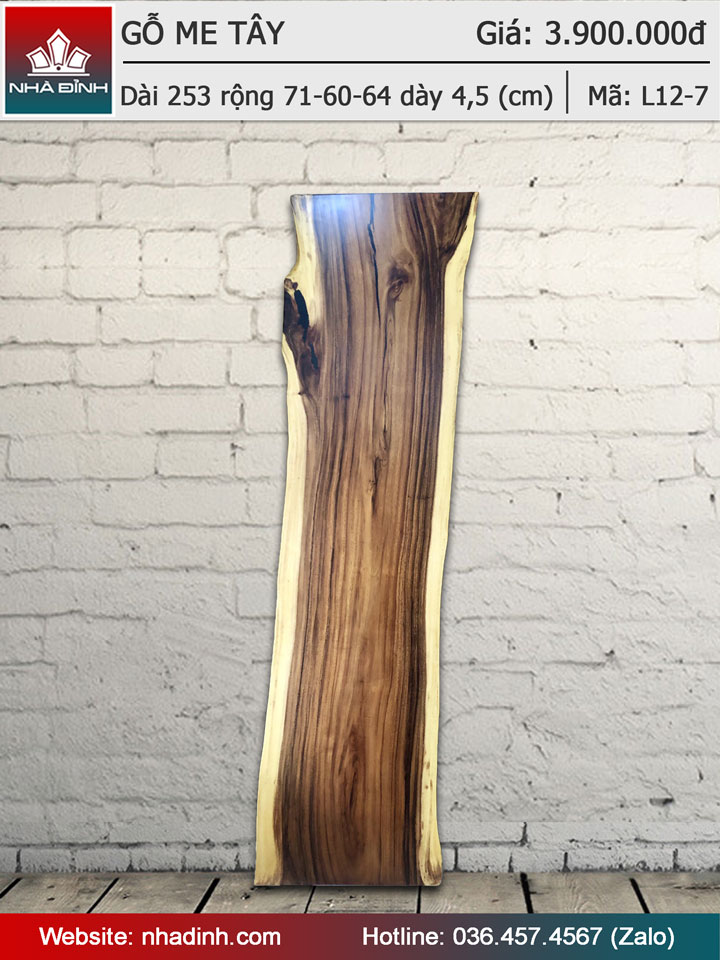 Mặt bàn gỗ Me Tây nguyên khối dài 2530 rộng 710-600-640 dày 45 (mm)