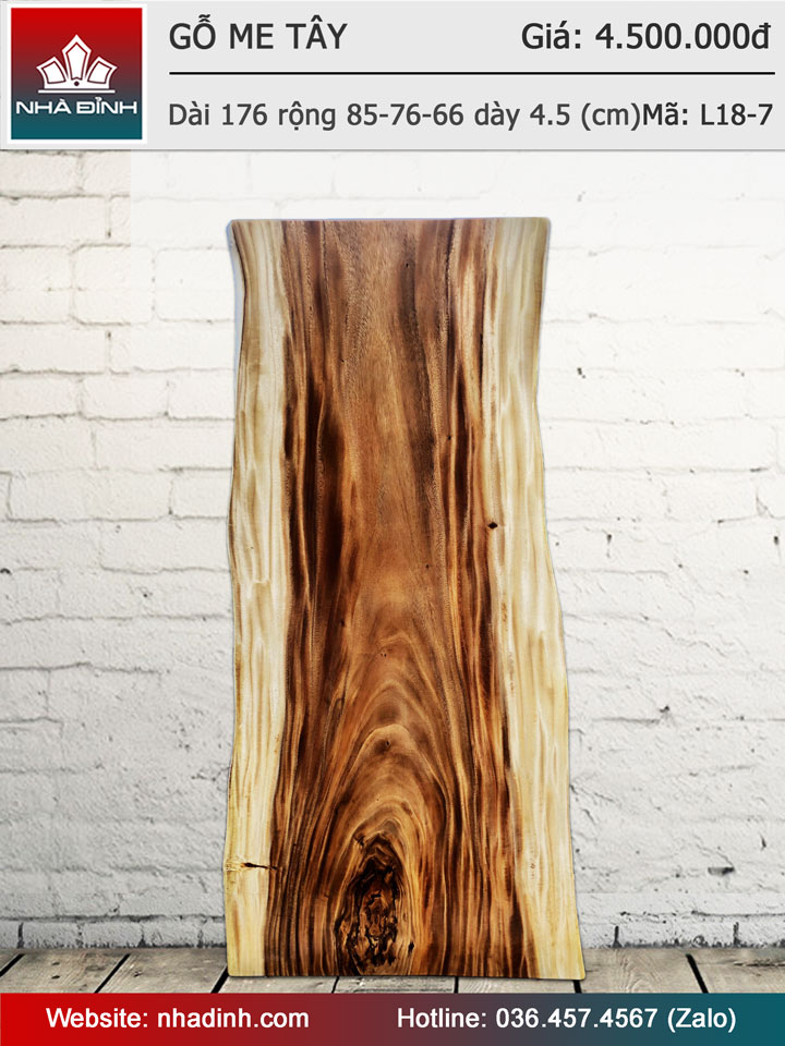 Mặt bàn gỗ Me Tây nguyên khối Dài 176 Rộng 85-76-66 Dày 4.5 (cm)