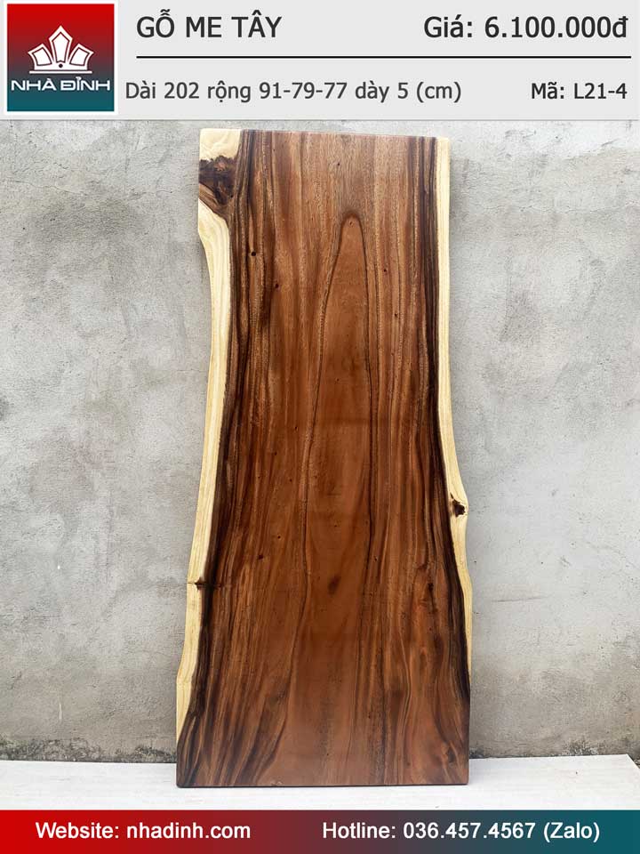 Mặt Bàn Gỗ Me Tây Nguyên Khối Dài 202 Rộng 91-79-77 Dày 5 (cm)