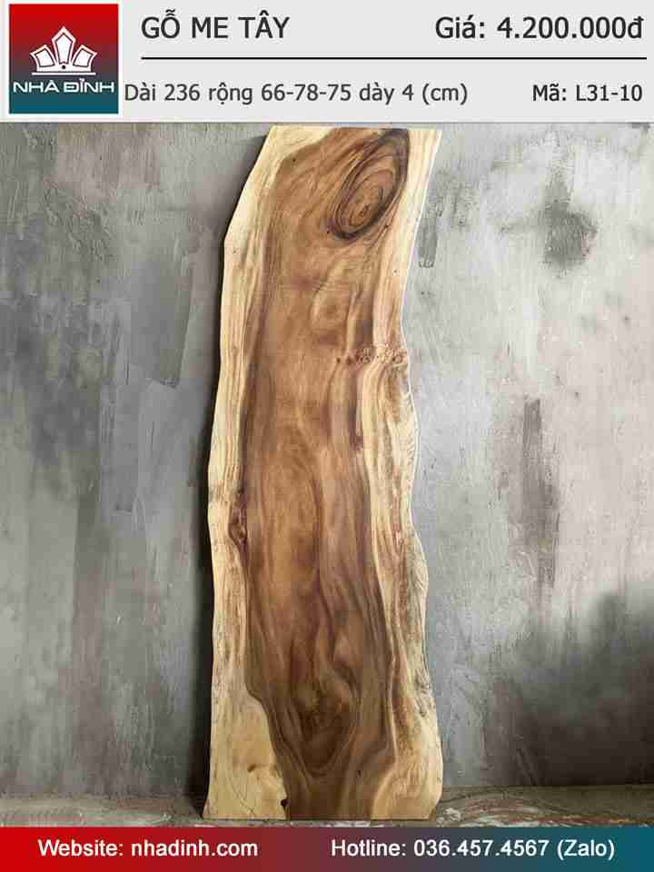 Mặt Bàn Gỗ Me Tây Nguyên Khối Dài 236 Rộng 66-78-75 Dày 4 (cm)