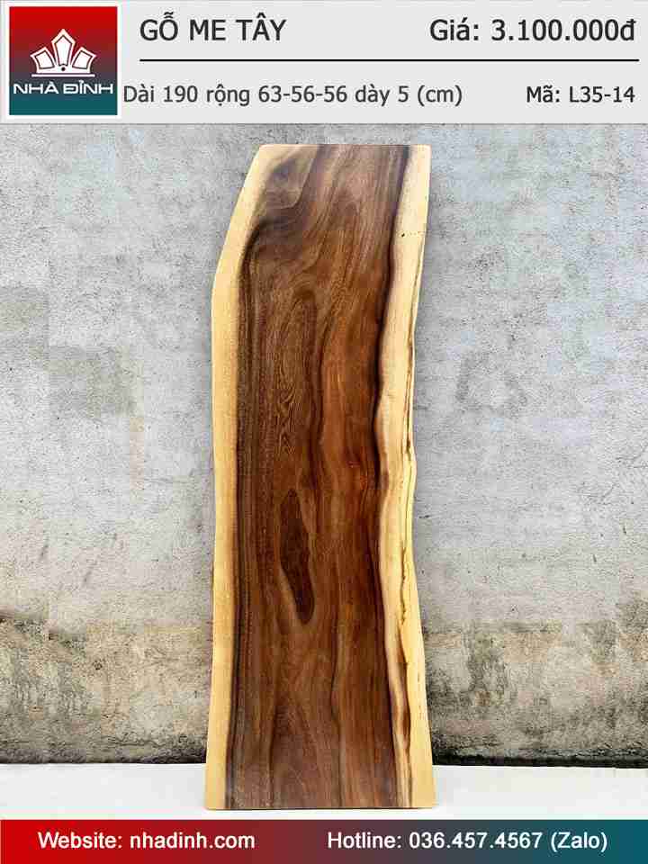 Mặt Bàn Gỗ Me Tây Nguyên Khối Dài 190 Rộng 63-56-56 Dày 5 (cm)