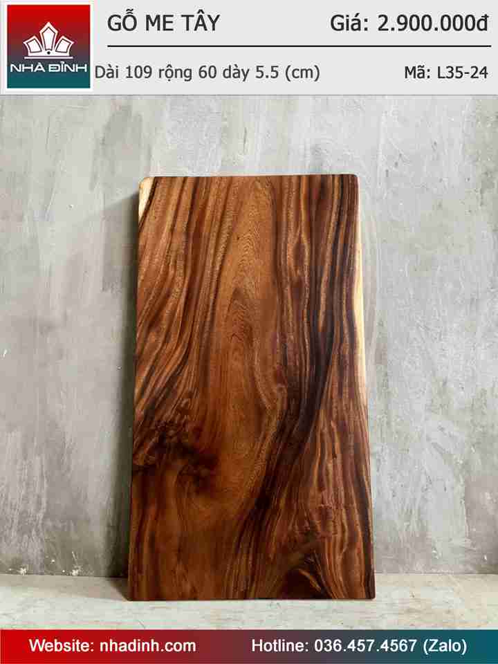 Mặt Bàn Gỗ Me Tây Nguyên Khối Dài 109 Rộng 60 Dày 5.5 (cm)