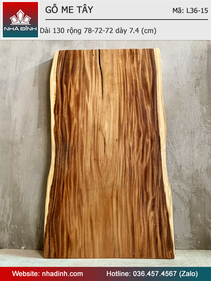 Mặt Bàn Gỗ Me Tây Nguyên Khối Dài 130 Rộng 78-72-72 Dày 7.4 (cm)