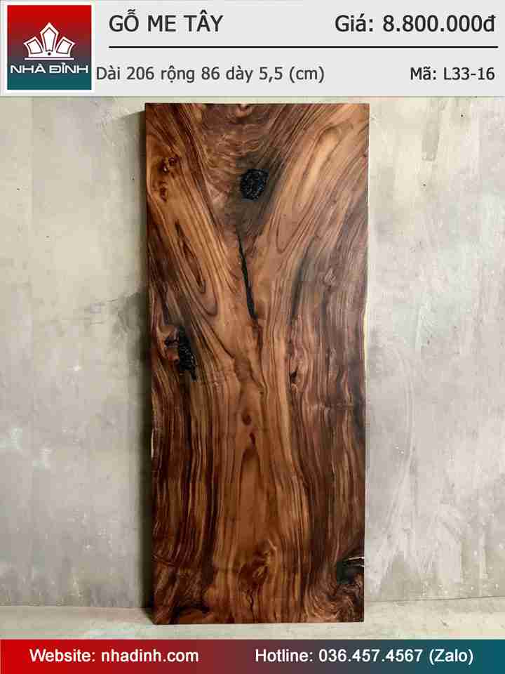 Mặt Bàn Gỗ Me Tây Nguyên Khối Dài 206 Rộng 86 Dày 5.5 (cm)