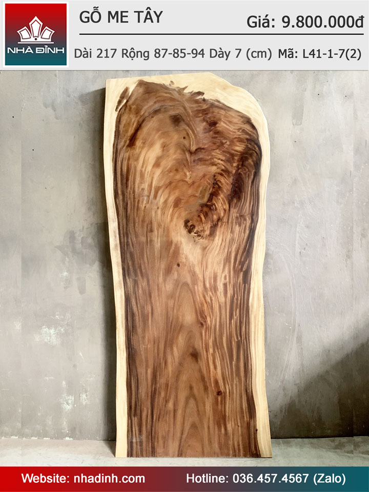 Mặt Bàn Gỗ Me Tây Nguyên Khối Dài 217 Rộng 87-85-94 Dày 7 (cm)