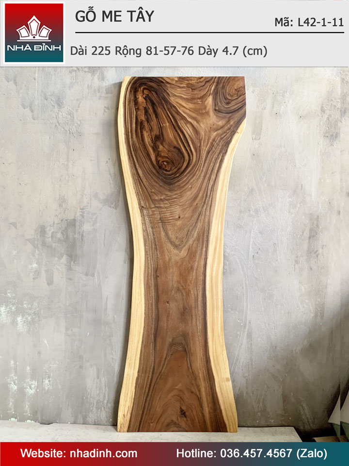 Mặt Bàn Gỗ Me Tây Nguyên Khối Dài 225 Rộng 81-57-76 Dày 4.7 (cm)